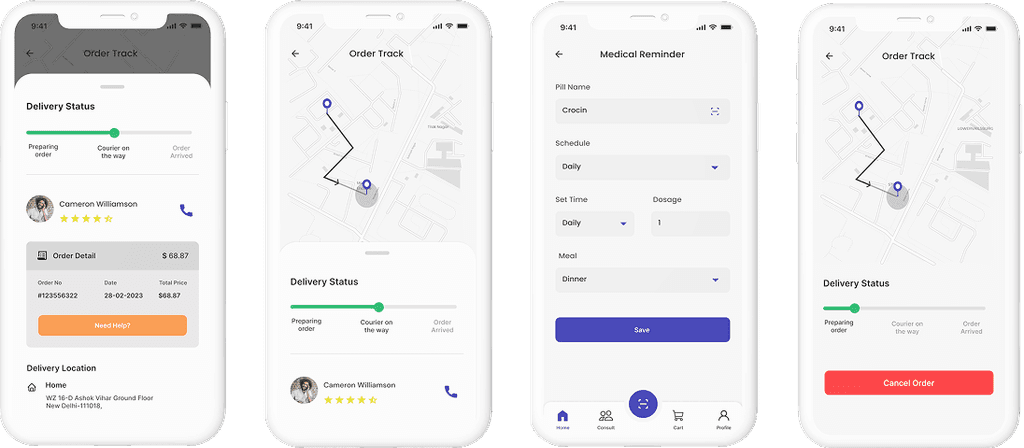 The app may have a feature that allows users to order medication and have it delivered to their doorstep within 10 minutes. This feature may include a payment gateway, order tracking, and delivery confirmation.