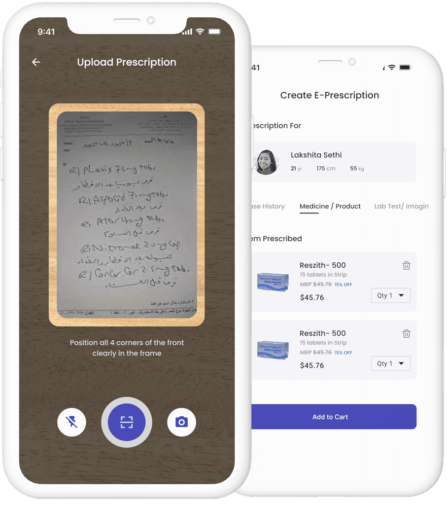 The screen for converting a handwritten prescription into an e-prescription and adding the prescribed item directly to the cart is a convenient and efficient way to manage medications. The user can simply take a photo of the prescription, and the system will convert it into an e-prescription format. Once the e-prescription is generated, the system automatically adds the prescribed medication to the user's cart. The user can review the items in the cart and remove or add any medications as needed. This screen streamlines the medication management process, reduces the risk of errors, and saves time for both the patient and healthcare provider.